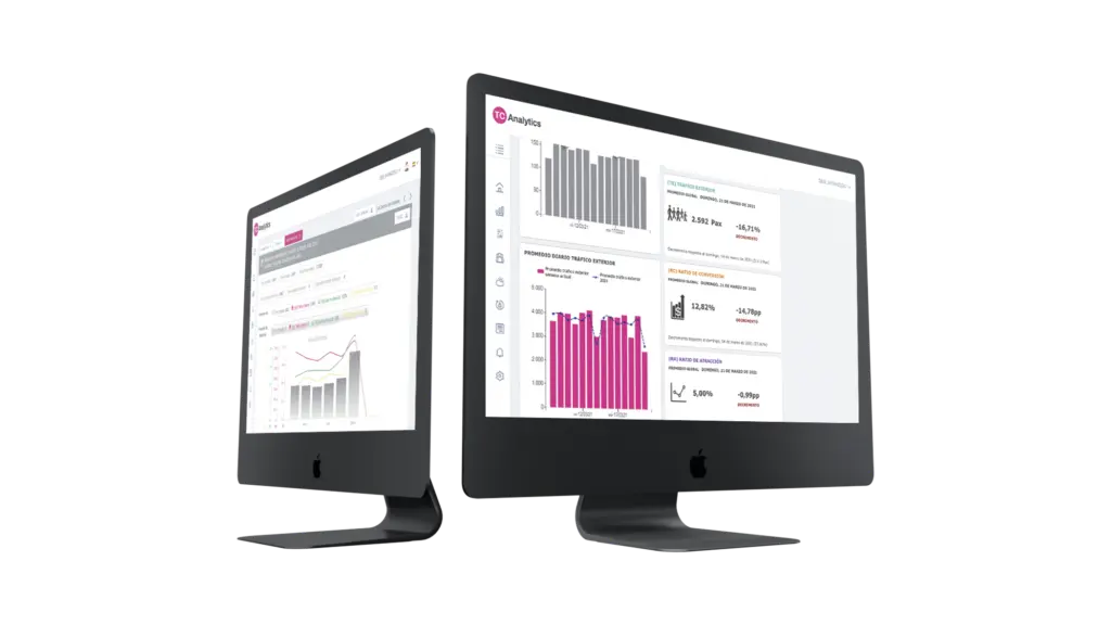 TC Analytics est un tableau de bord complet pour les professionnels du Retail, grâce auquel il est possible de comparer la situation de tous les points de vente à tout moment, en comparant tous leurs indicateurs clés tels que, par exemple, le flux piétonnier, les clients entrant dans le magasin et leur temps d’attente, ou les ratios d’attraction, de conversion et de fidélité. De plus, notre logiciel est en constante évolution et mise à jour pour s’adapter aux nouvelles opportunités et apporter des améliorations constantes au commerce de détail.